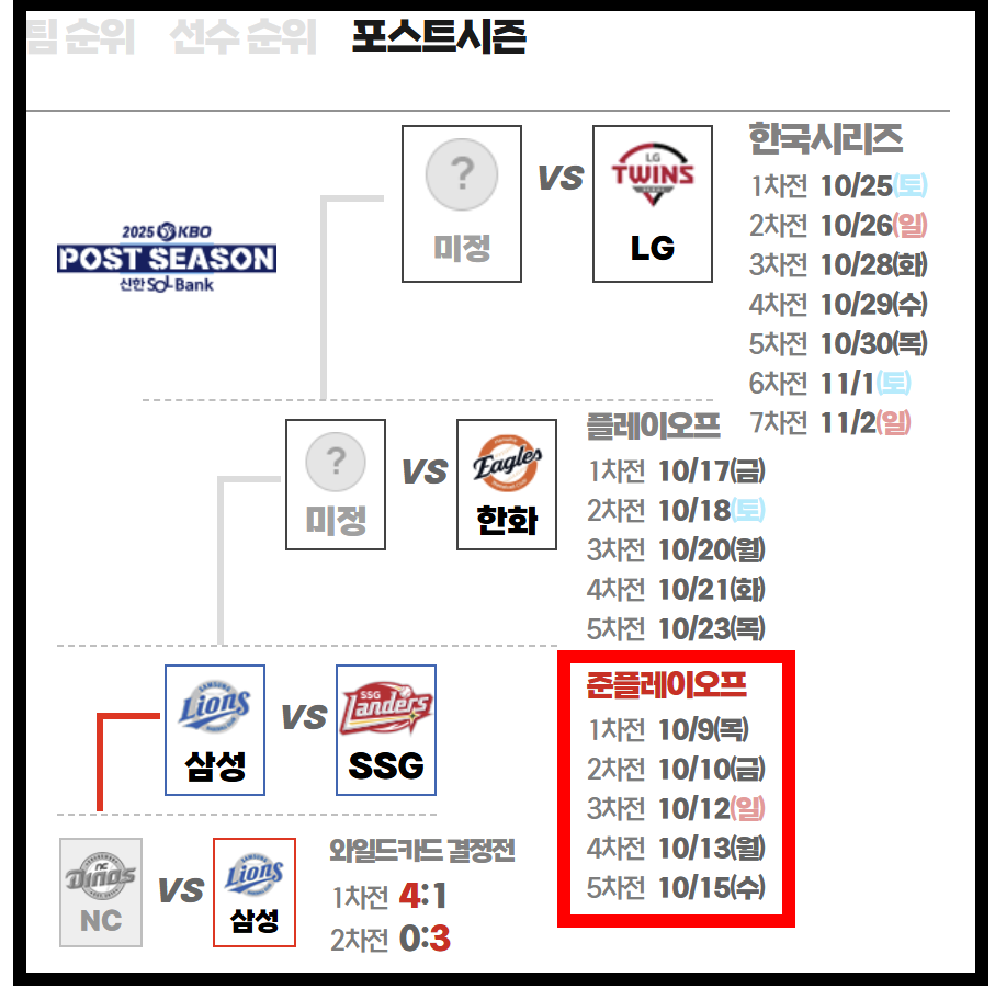 | 2025 KBO 준플레이오프 일정 & 티켓 예매 완전 정리 (0) | 2025.10.08 |